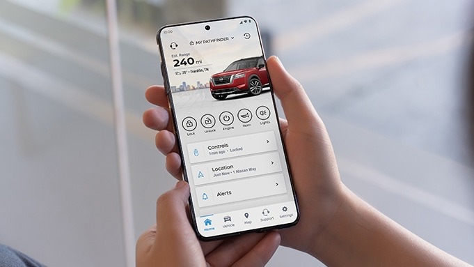 Help and convenience can be as close as your compatible smartphone with NissanConnect® Services through the MyNISSAN app. Enjoy easy access to roadside assistance, the Remote Engine Start System, Remote Lock and Unlock, My Car Finder, customizable alerts, and more. Stay ahead of potential security concerns with Alarm Notification and stay informed whenever your Nissan’s factory alarm is triggered. Elevate the ownership experience with the MyNISSAN app for your compatible smart device. 8 8 13 9