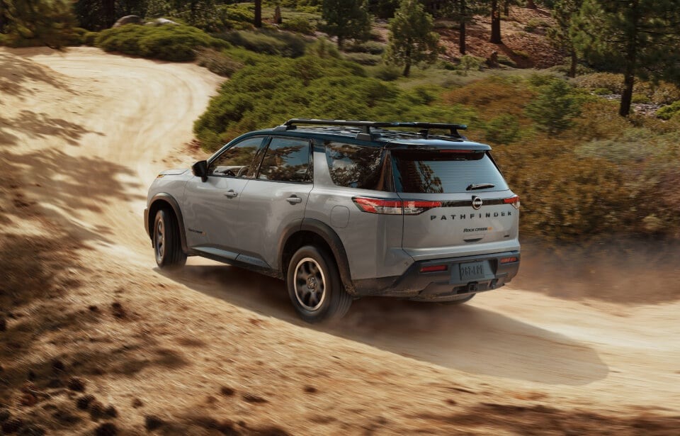 1 Price shown is Manufacturer’s Suggested Retail Price (MSRP) for base model trim. Pathfinder Rock Creek with premium two-toned paint shown priced higher at $46,080. MSRP excludes tax, title, license, options, and destination and handling charges. Dealer sets actual price. Some color, package, and option selections may include, exclude, or require the purchase of additional options and packages. Some options shown may not be available on all trims. See retailer for details.